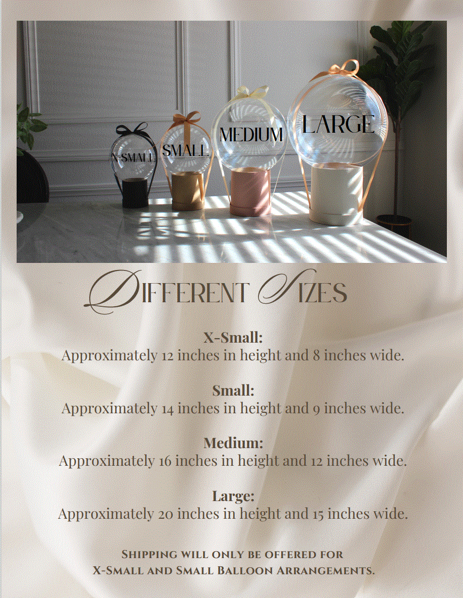 Shipping is available for small balloon arrangements only. We offer 2-day priority shipping. Your balloon arrangement will be shipped 2-3 days after placing your order unless you select a future date. A shipping fee will apply.
